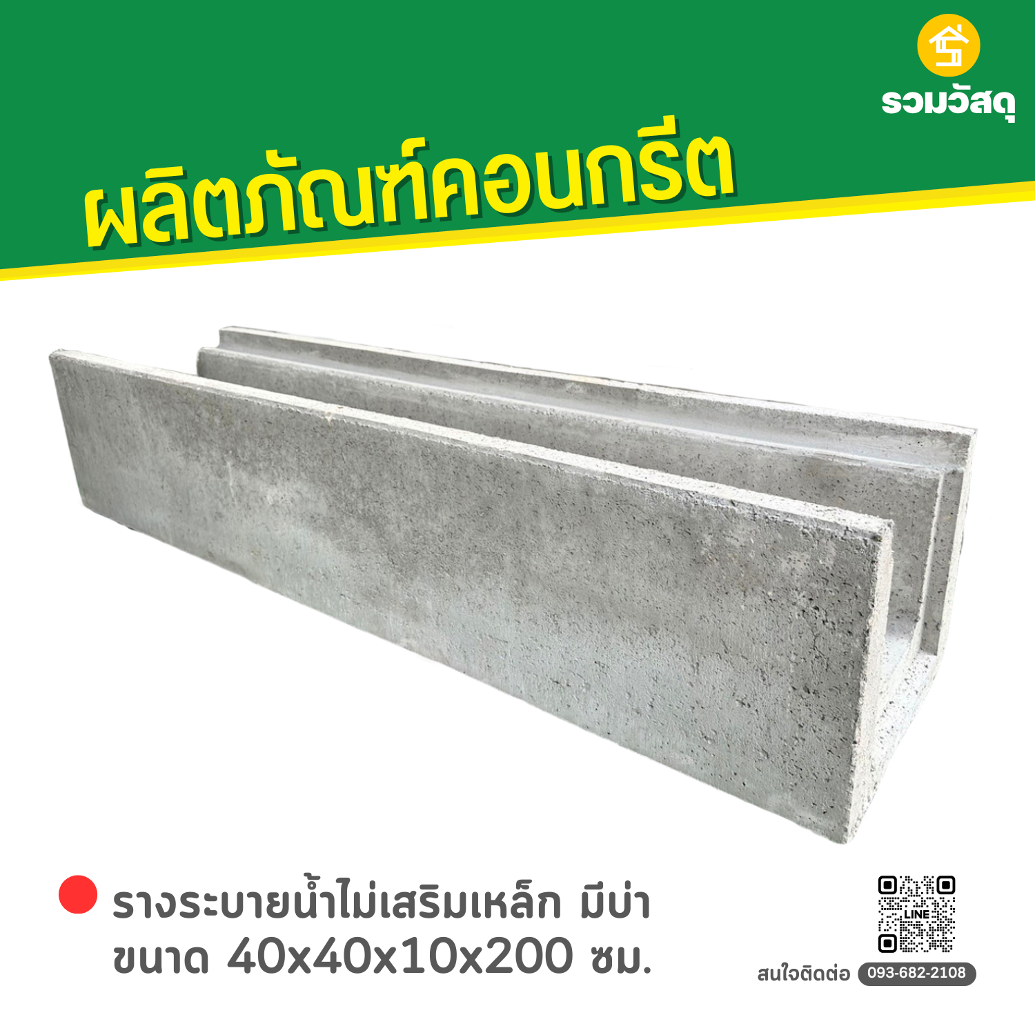 รางระบายน้ำคอนกรีต (Concrete U-Ditch) เป็นรางระบายน้ำคอนกรีตสำเร็จรูป